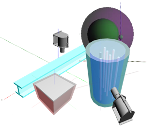 A modeled object is a dissymmetric structure consisting of embedded cylinders, parallelepipeds, spheres. So objects with sophisticated parameters and arbitrary distribution of activity can be modeled: with surface (internal and external), volume distribution etc.